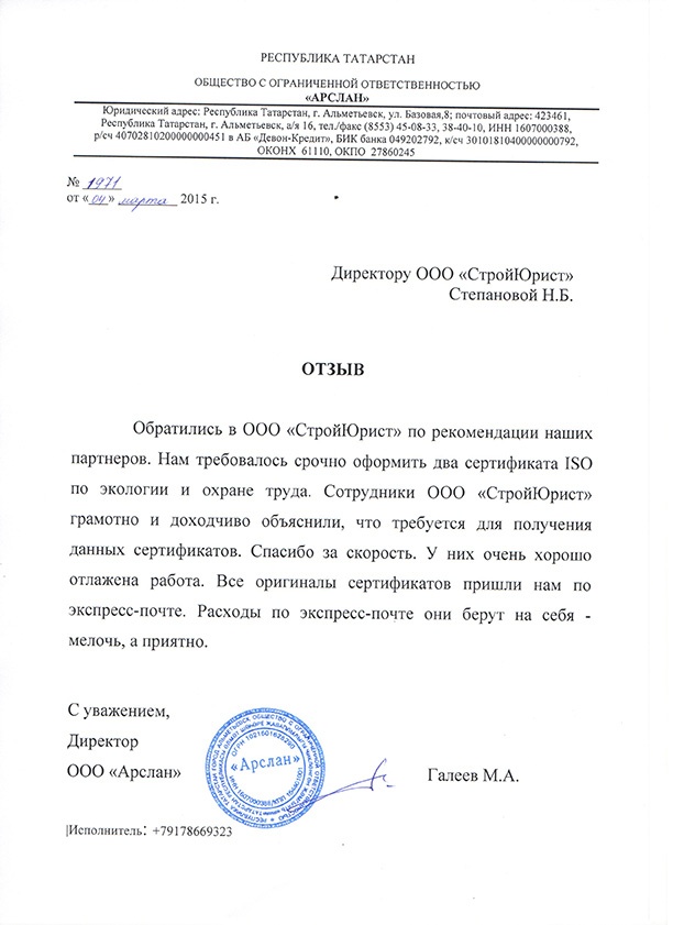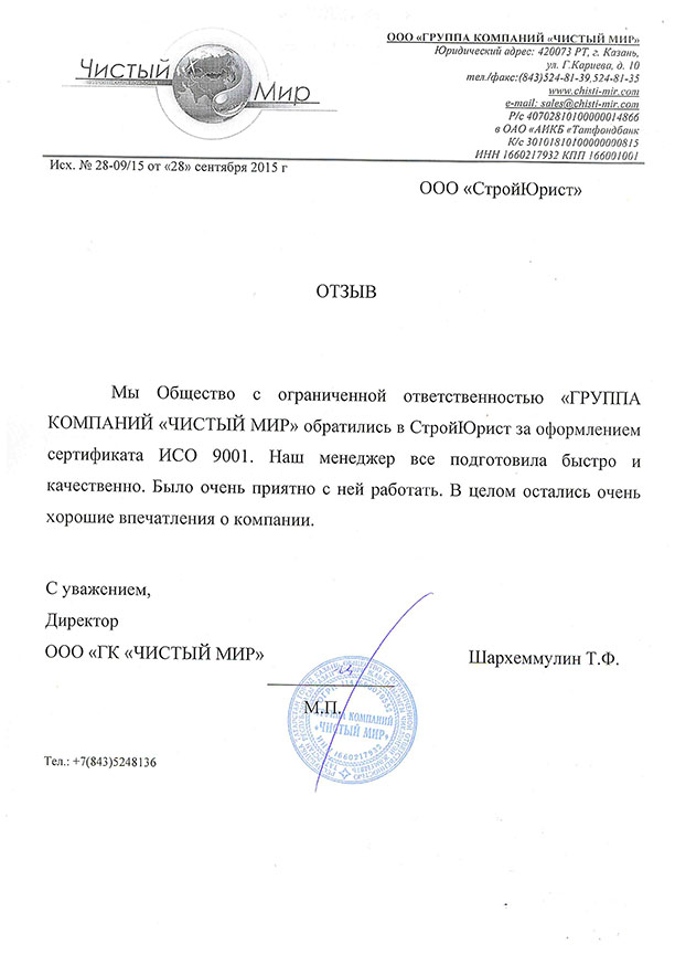 Отзывы клиентов "СтройЮрист" по ISO в Курске
