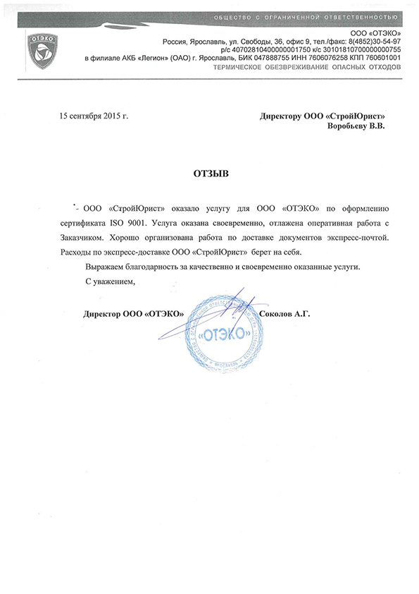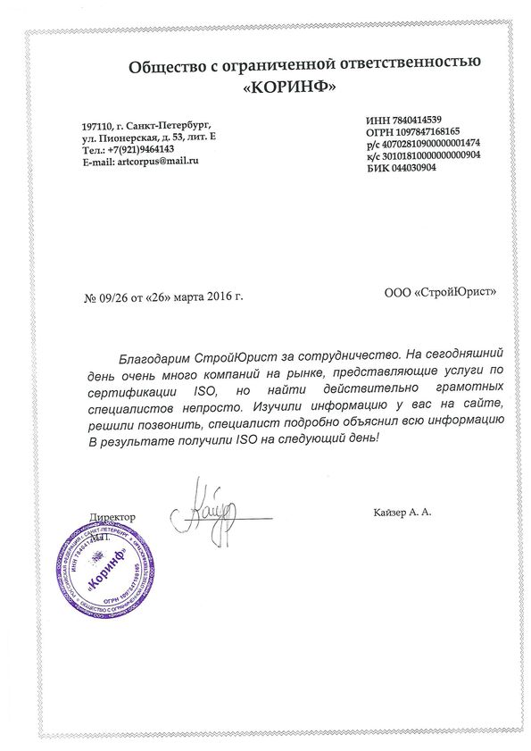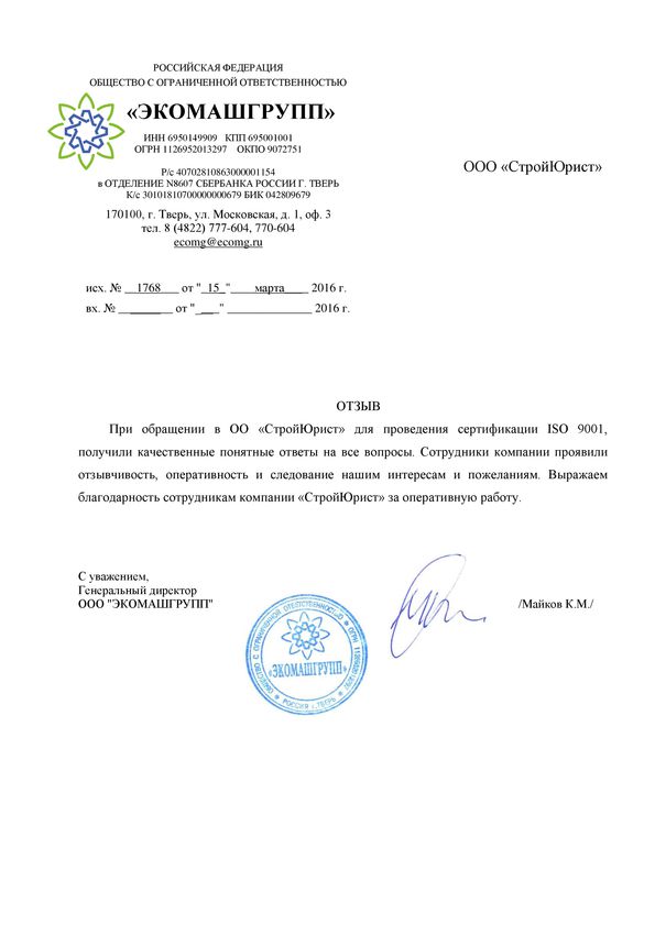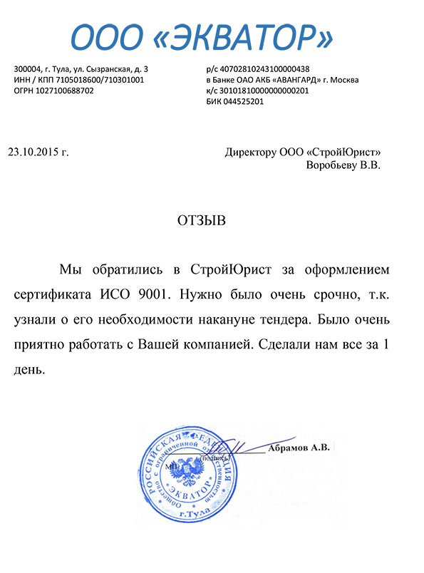 Отзывы клиентов "СтройЮрист" по ISO в Курске