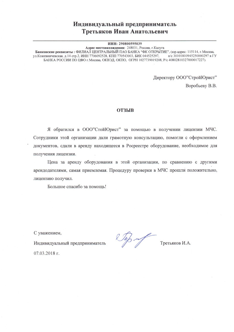 Отзывы клиентов "СтройЮрист" по лицензированию МЧС в Курске
