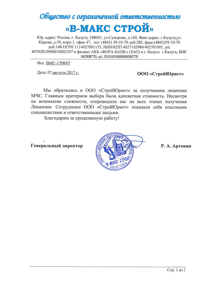 Отзывы клиентов "СтройЮрист" по лицензированию МЧС в Курске