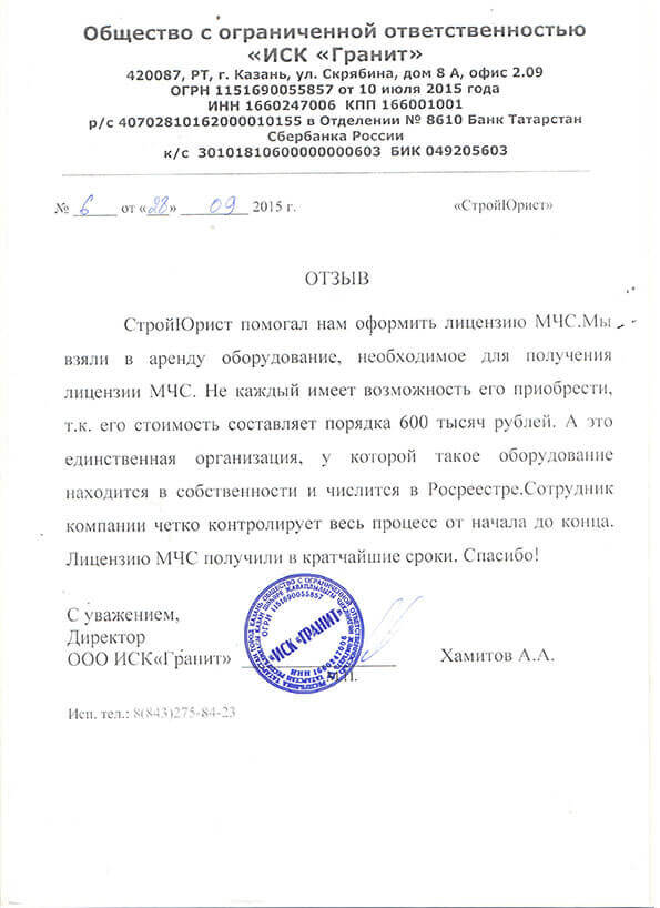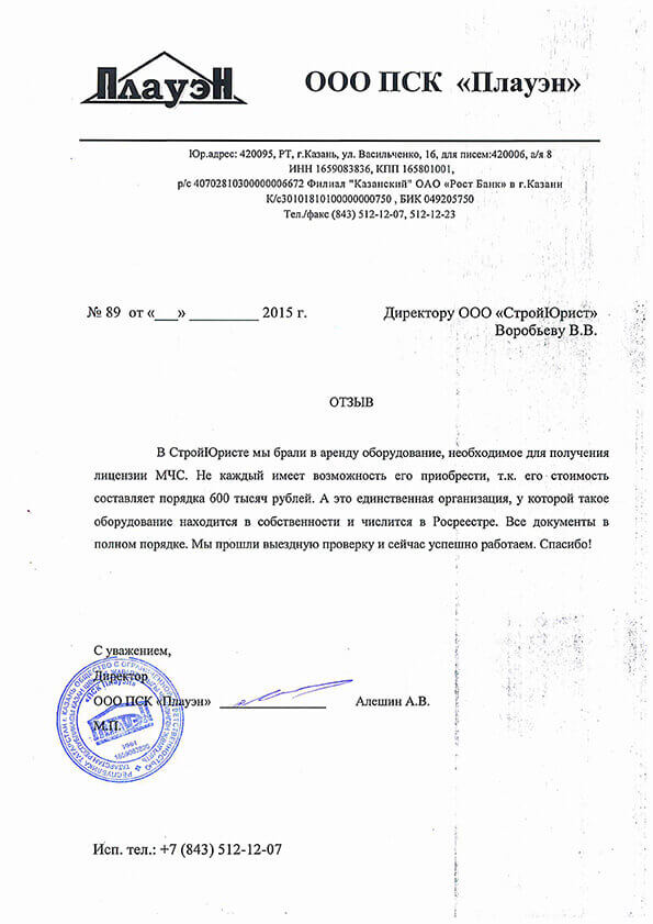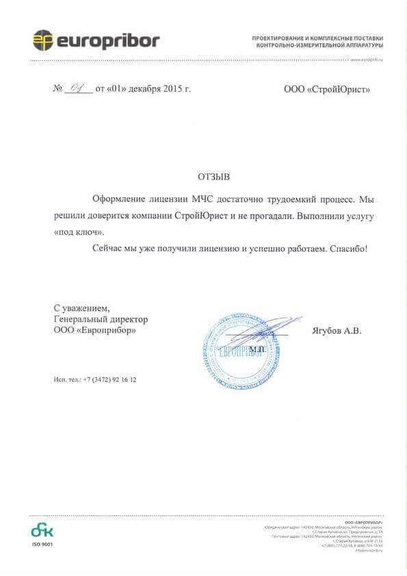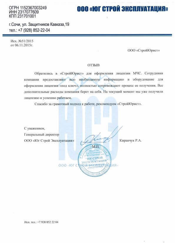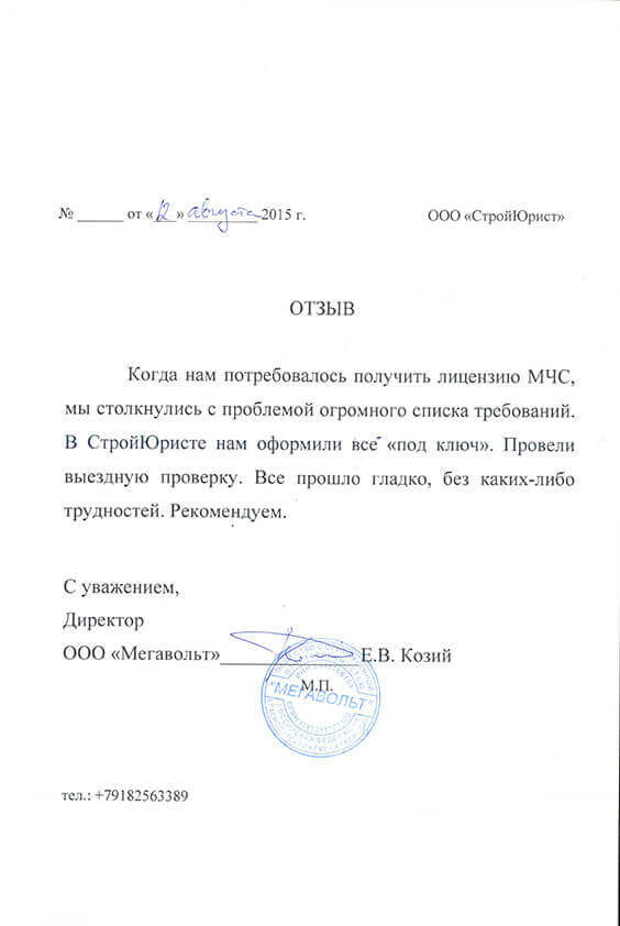 Отзывы клиентов "СтройЮрист" по лицензированию МЧС в Курске