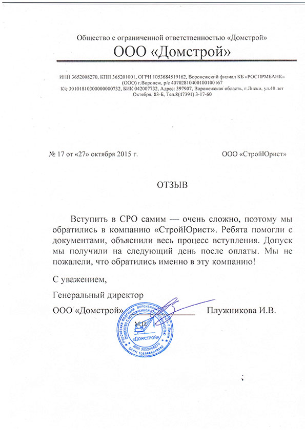 Отзывы клиентов "СтройЮрист" по вступлению в СРО в Курске