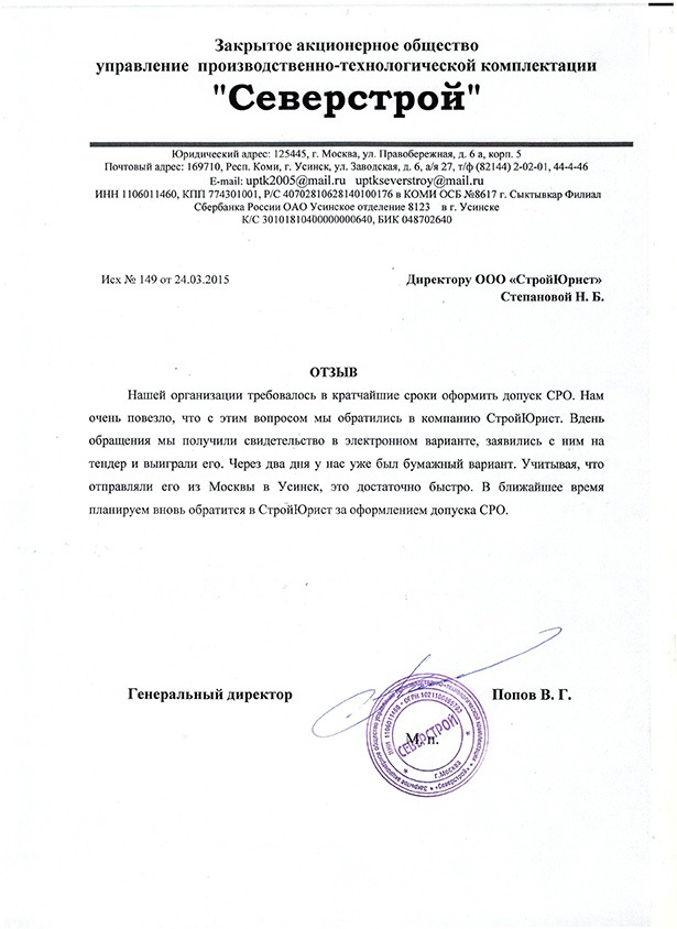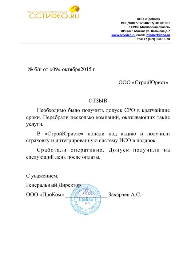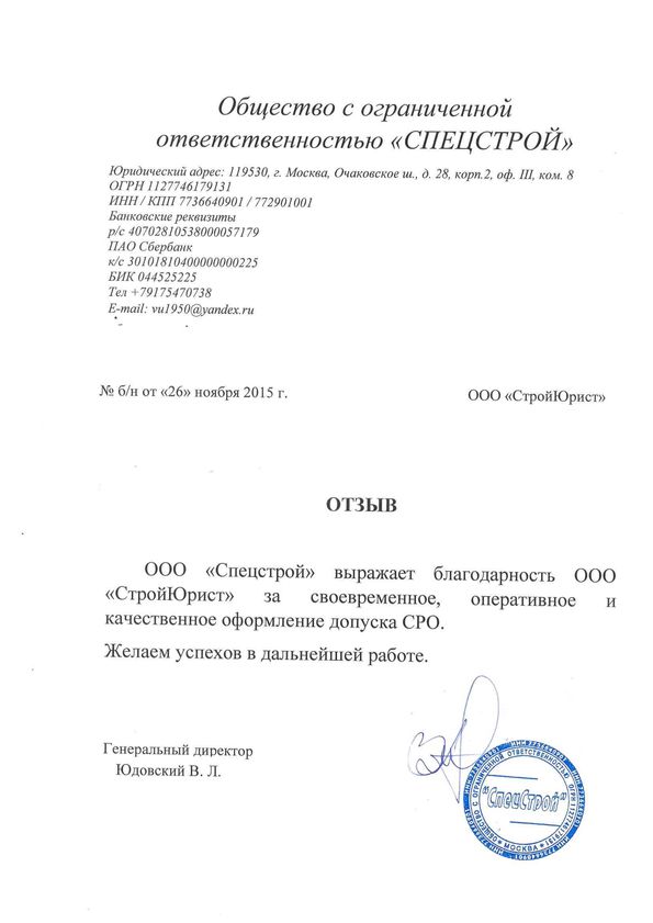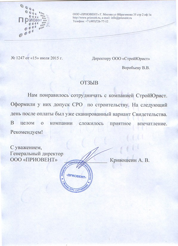 Отзывы клиентов "СтройЮрист" по вступлению в СРО в Курске