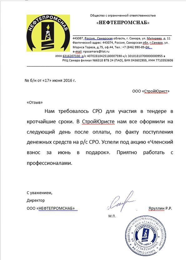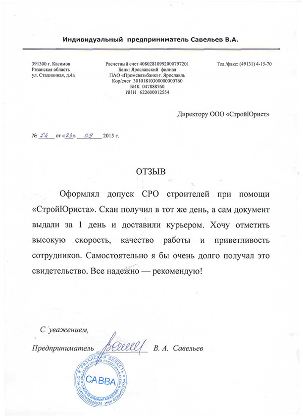 Отзывы клиентов "СтройЮрист" по вступлению в СРО в Курске