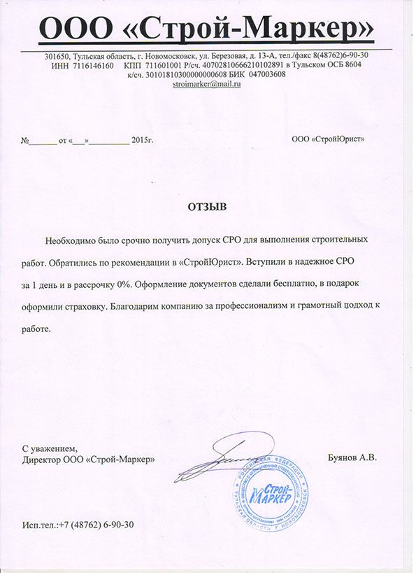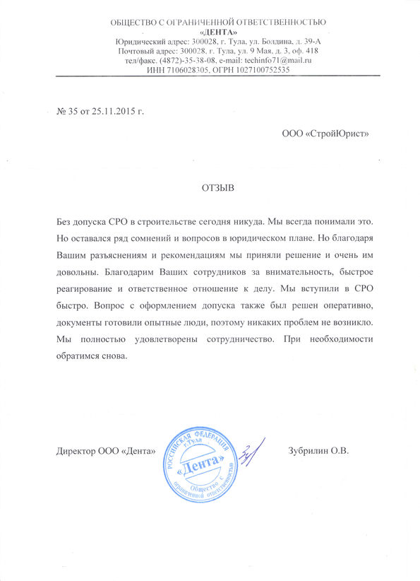 Отзывы клиентов "СтройЮрист" по вступлению в СРО в Курске