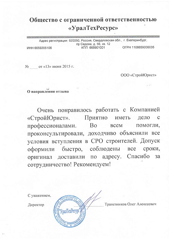 Отзывы клиентов "СтройЮрист" по вступлению в СРО в Курске