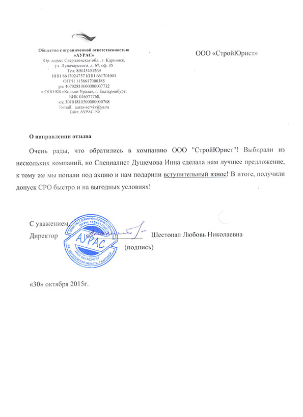 Отзывы клиентов "СтройЮрист" по вступлению в СРО в Курске