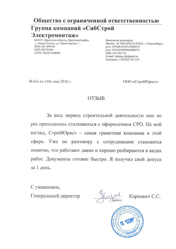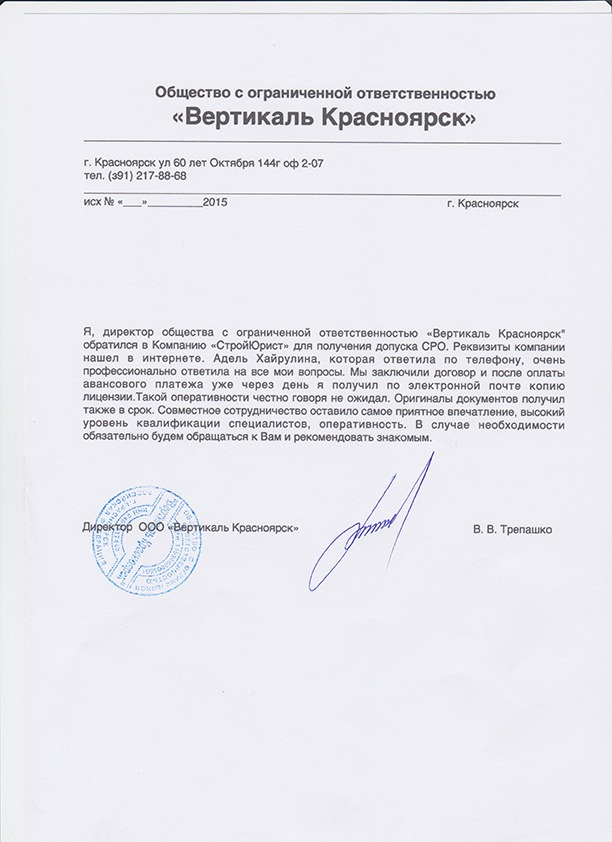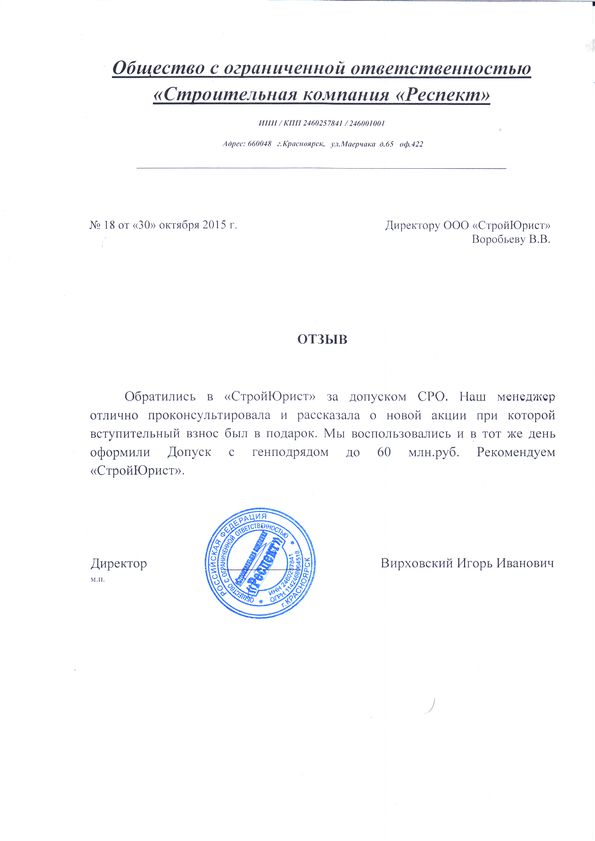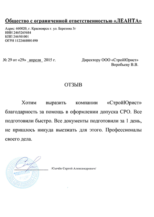 Отзывы клиентов "СтройЮрист" по вступлению в СРО в Курске