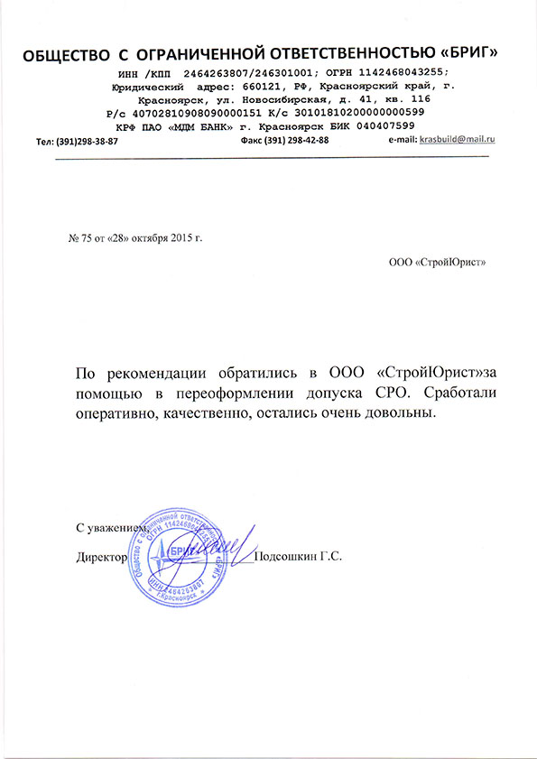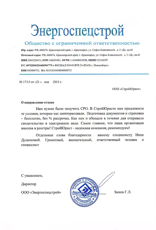 Отзывы клиентов "СтройЮрист" по вступлению в СРО в Курске