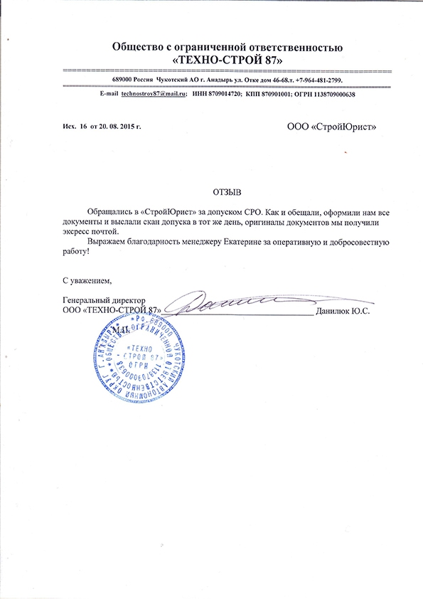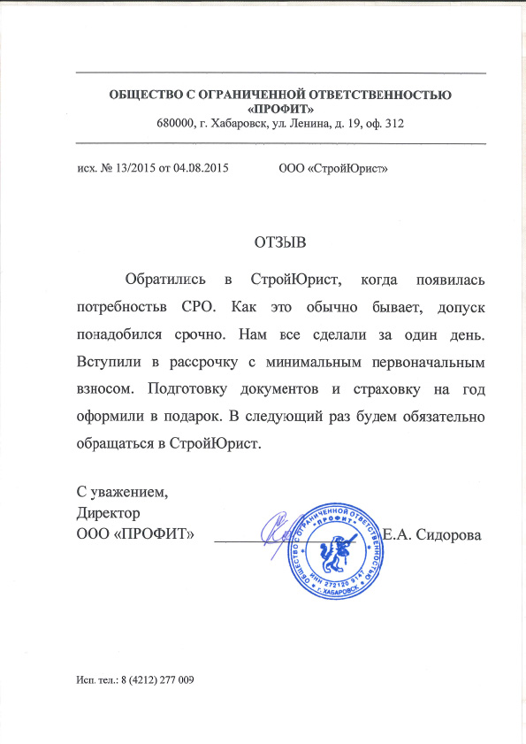 Отзывы клиентов "СтройЮрист" по вступлению в СРО в Курске